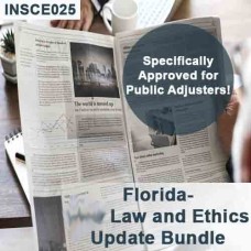 This online continuing education class satisfies the requirement that Public Adjusters complete a Law and Ethics Update course specifically approved for Public Adjusters every 2 years, which is specific to the license held by the licensee This online Florida CE course covers Regulatory awareness, Licensing requirements, Insurance laws, Ethical requirements, Disciplinary and industry trends, and more. The course includes six multiple-choice Unit Quizzes and one Final Exam.  It is designed as a self-paced course done entirely online at your convenience.